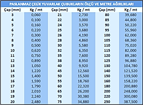 Östenitik AISI 304 304L 316 316L 316Ti, Martensitik AISI 310 standart kalite, 2B mat, BA parlak, 4N ince taşlı yüzey, 4mm ile 35mm arasında çap genişliğine sahip ürünleri tedarik etmekteyiz.